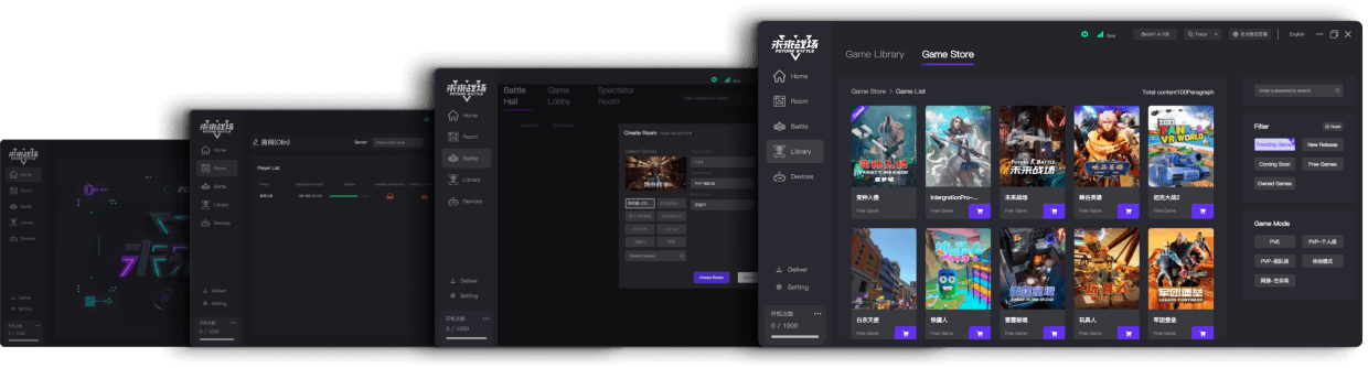 Our all-in-one management software is a highly effective tool for managing multiplayer VR and metaverse stores like Future Battle. It offers a wide range of features that allow store owners and operators to easily manage the VR experience of their customers, including the ability to regularly update with the latest games and experiences, connect with venues and players in other locations, manage user data, etc.